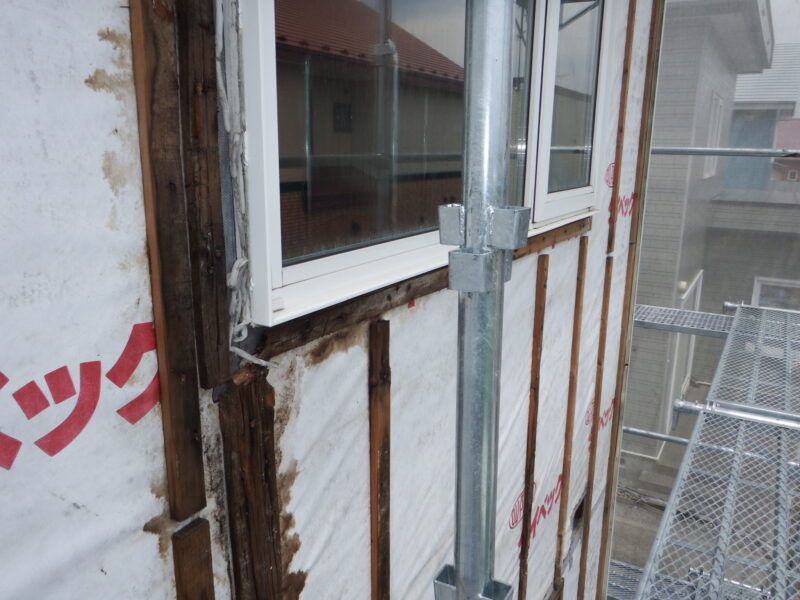 外壁材を剥がすと、やっぱり外壁を留めるための